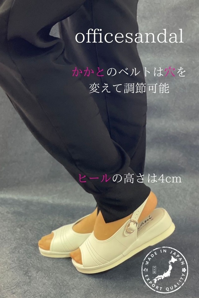 足首ベルトでブレを防いで歩行をサポート 足首ベルトは、動きやすいスナップボタンを採用。5cmヒールで脚長効果も ・ベルト式なのであなたの足にピッタリフィットさせられます。 ・ストレッチゴム入りで足入れラクラク 【カラー】 ホワイト(白)、ブラック(黒) 【サイズ/重量(約)】 S:21.5~22.0cm M:22.5~23.0cm L:23.5~24.0cm LL:24.5~25.0cm ワイズ:EE ヒール高:5cm 重量:片足180g(Lサイズ) 【仕様】 ■素材:甲材・中敷/ポリ塩化ビニル、底材/EVA、ゴム ■生産国:日本